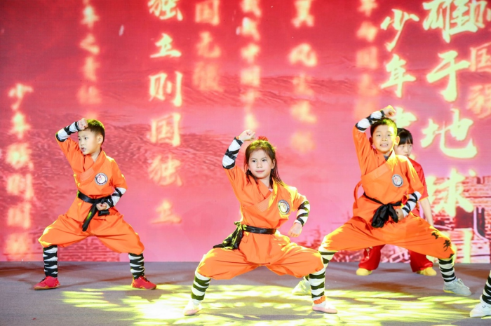 由中华武术日.武者荣耀组委会组织,来自潭腿门功夫龙宝贝、龙腾九州国术馆、东城武术馆的孩子们表演了武术《少年强中国强》,表现了青少年自强不息、爱国图强的精神风貌。