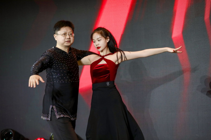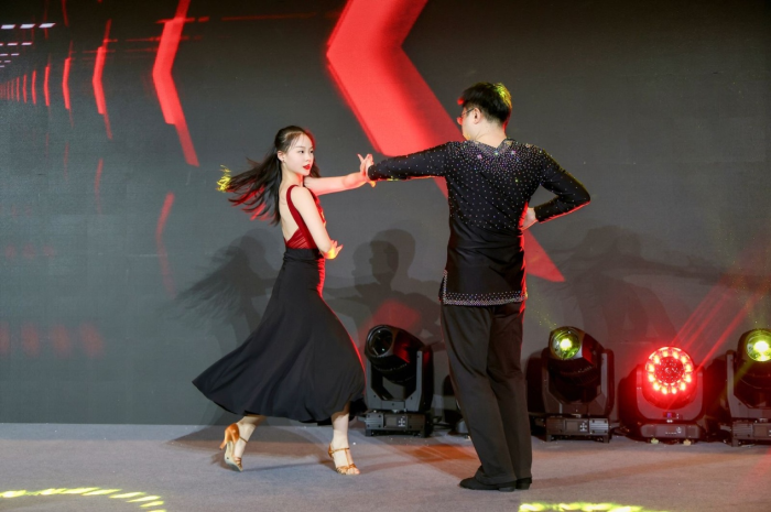 北京博士后舞蹈协会会长、华为EBG资深算法专家余振华博士、北京体育大学黄林钦代表北京博士后拉丁舞队表演了拉丁舞《牛气冲天舞新春》,欢快激情的舞蹈把气氛带向了高潮。