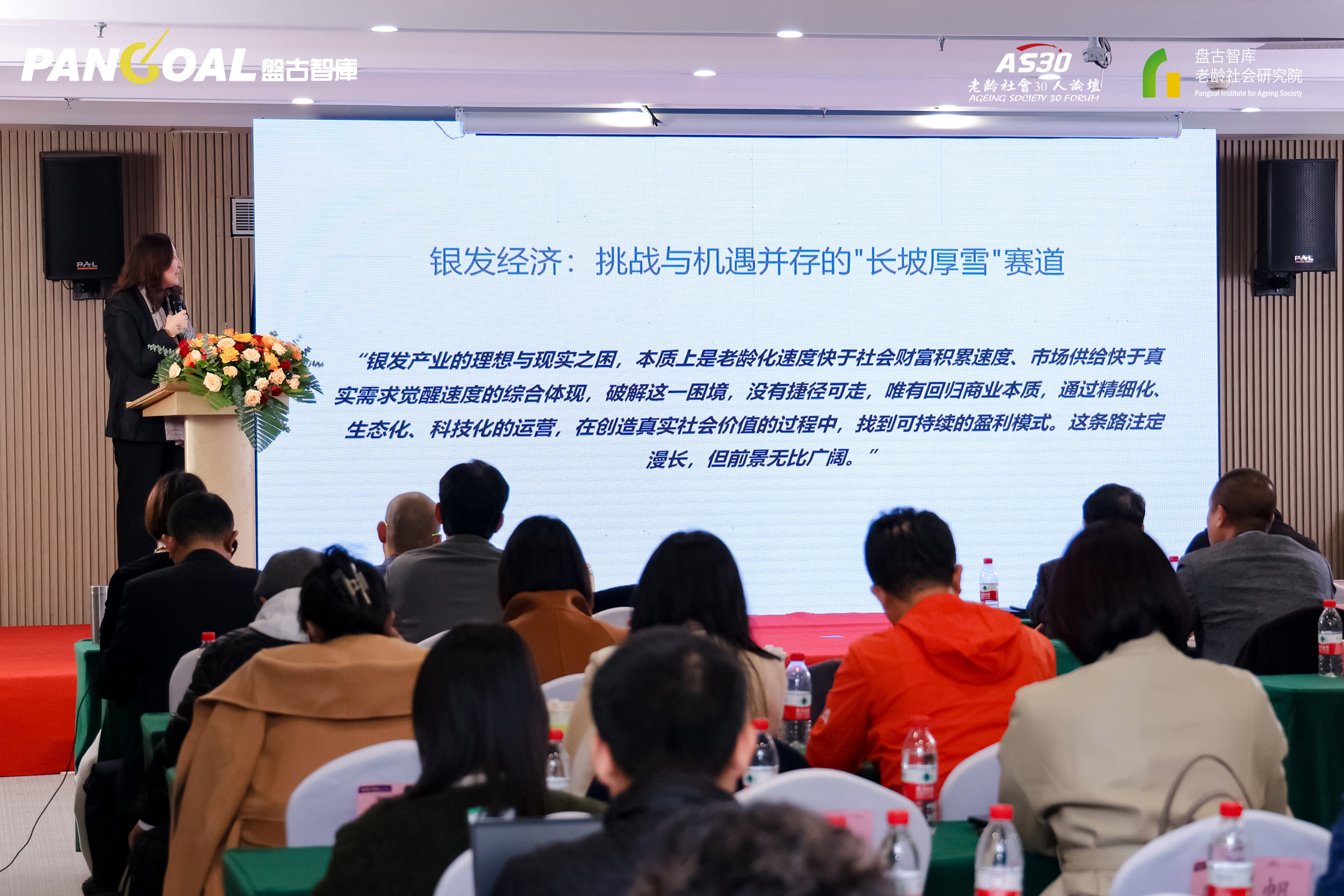 本次峰会锚定老龄社会背景下的经济产业战略机遇,聚焦银发经济与市场的创新创业等核心议题。会议以“促进银发企业创业创新、推动产业协同合作共赢” 为导向,特别邀请银发经济诸多领域骨干齐聚,共同探讨银发市场潜力、银创机遇发掘、产业创新路径与合作方向?;嵋橛膳坦胖强饫狭渖缁嵫芯吭焊痹撼ぬ朴敝鞒?。盘古智库理事长易鹏和中共中央党校(国家行政学院)战略哲学学科创始教授、中国无障碍国家战略课题主持人段培君参与致辞。
